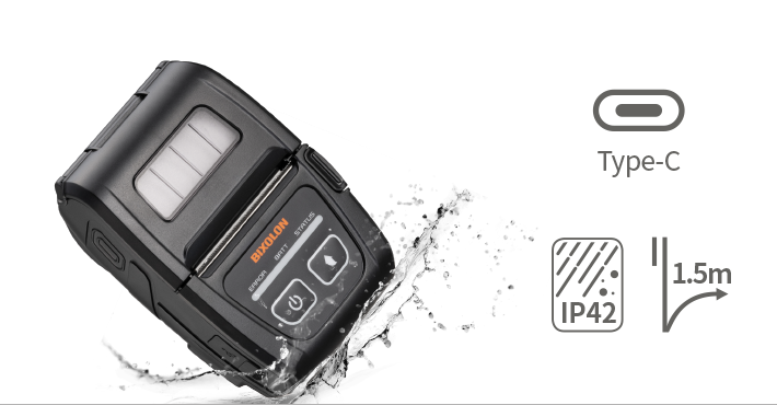 Built for rugged use, the SPP-C200 is drop-tested from 1.5 metres and offers IP42 ingress protection against dust and water. Its ultra-compact form and built-in Bluetooth connectivity make it ideal for mobile workforce environments where printing receipts on location is required.