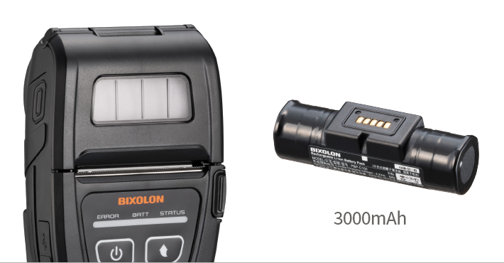 The BIXOLON SPP-C200 is a compact and lightweight mobile receipt printer designed for field-operations, mobile POS, proof-of-delivery and on-the-go printing. It supports 58 mm wide media, prints at 203 dpi resolution and delivers print speeds up to 80 mm/s. The integrated 3 000 mAh single-cell battery provides long operation between charges, and the USB-C port allows both data transfer and charging via a single cable.