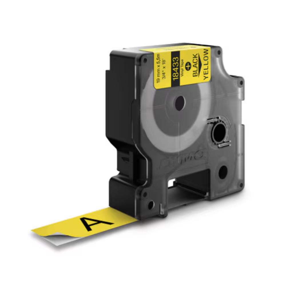 The DYMO Rhino Industrial Vinyl Label (19 mm, Black on Yellow) is designed for durable identification in demanding environments. The vinyl material combined with permanent adhesive provides strong adhesion on flat and slightly curved surfaces, making it suitable for electrical panels, equipment, shelving, safety markings, and asset identification.