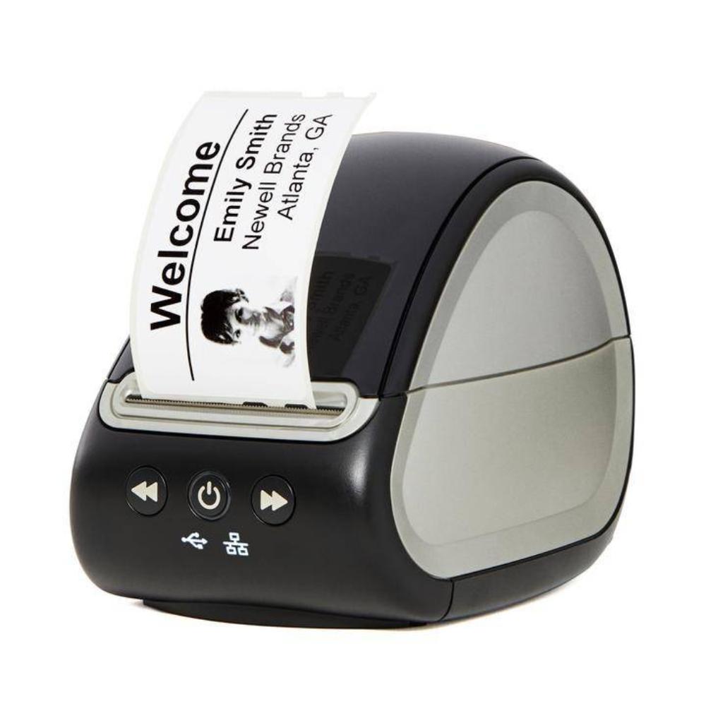 The DYMO LabelWriter 550 Turbo is a high-speed label printer built for offices, shipping departments, and similar environments where fast, reliable label printing is required. It uses direct thermal printing, eliminating the need for ink or toner, and delivers up to 90 labels per minute when printing four-line address labels via USB. The printer includes LAN connectivity so multiple users on a network can access it, making it well suited for shared workplace use.