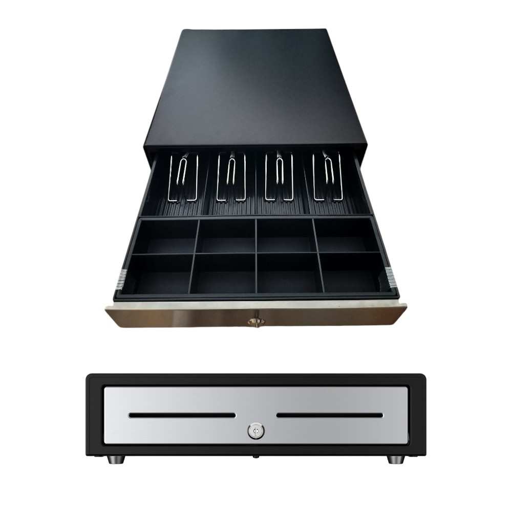 The Star Micronics CD4-1616 Slideout Cash Drawer is a cost-effective solution designed for retail and hospitality applications that require a robust, hard-wearing cash drawer. Featuring a 16-inch size, this cash drawer offers ample space with 4 note compartments and 8 coin compartments, making it suitable for both high and low volume cash transactions. The slideout design provides easy access, improving efficiency and organization at the point of sale. Built with durability in mind, the CD4 series is ideal for environments that demand a reliable and secure cash handling solution. With its compact and sturdy construction, this cash drawer is an excellent choice for businesses looking to optimize their cash management while maintaining quality and performance.