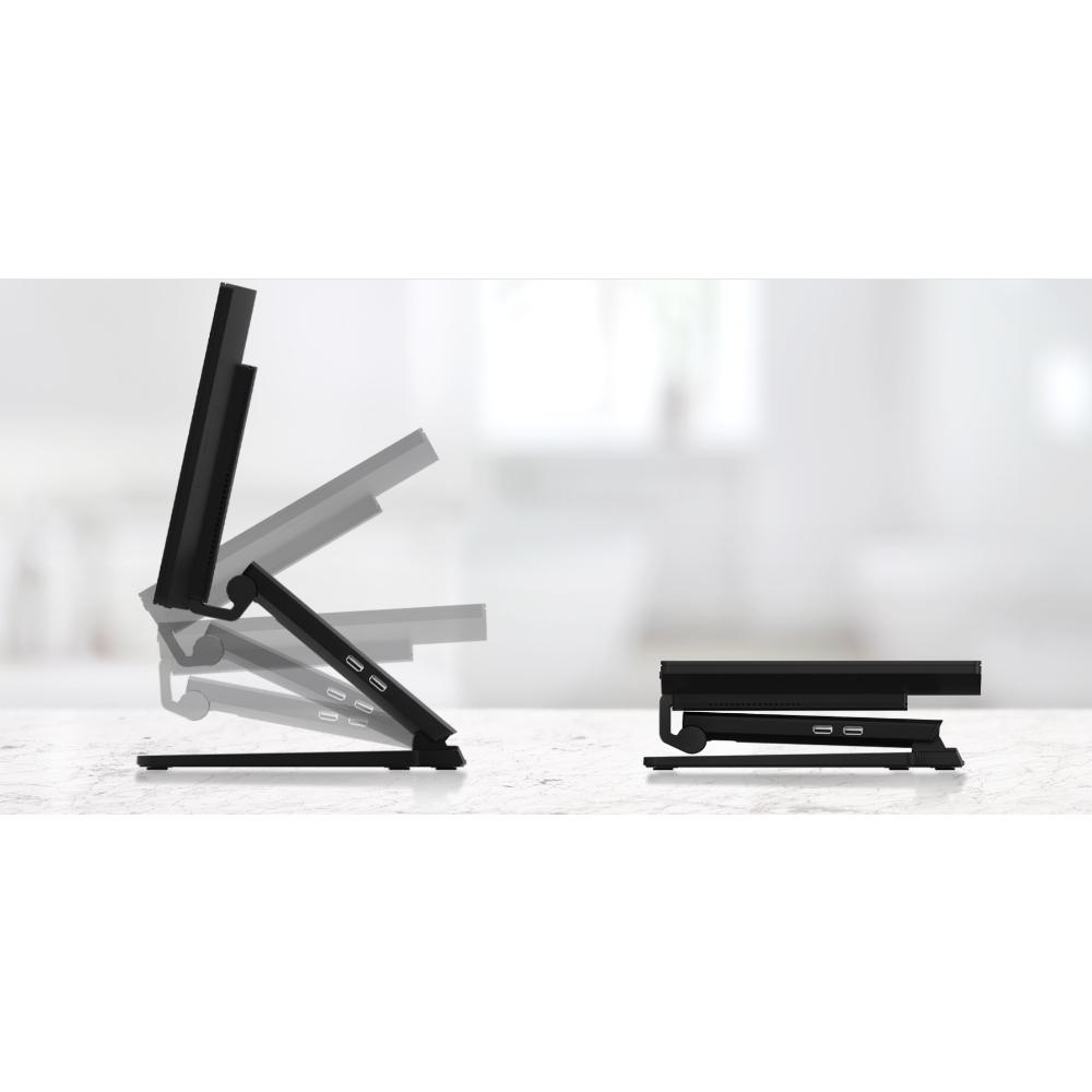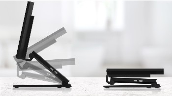 - Adjustable height and viewing angles with dual-hinge design