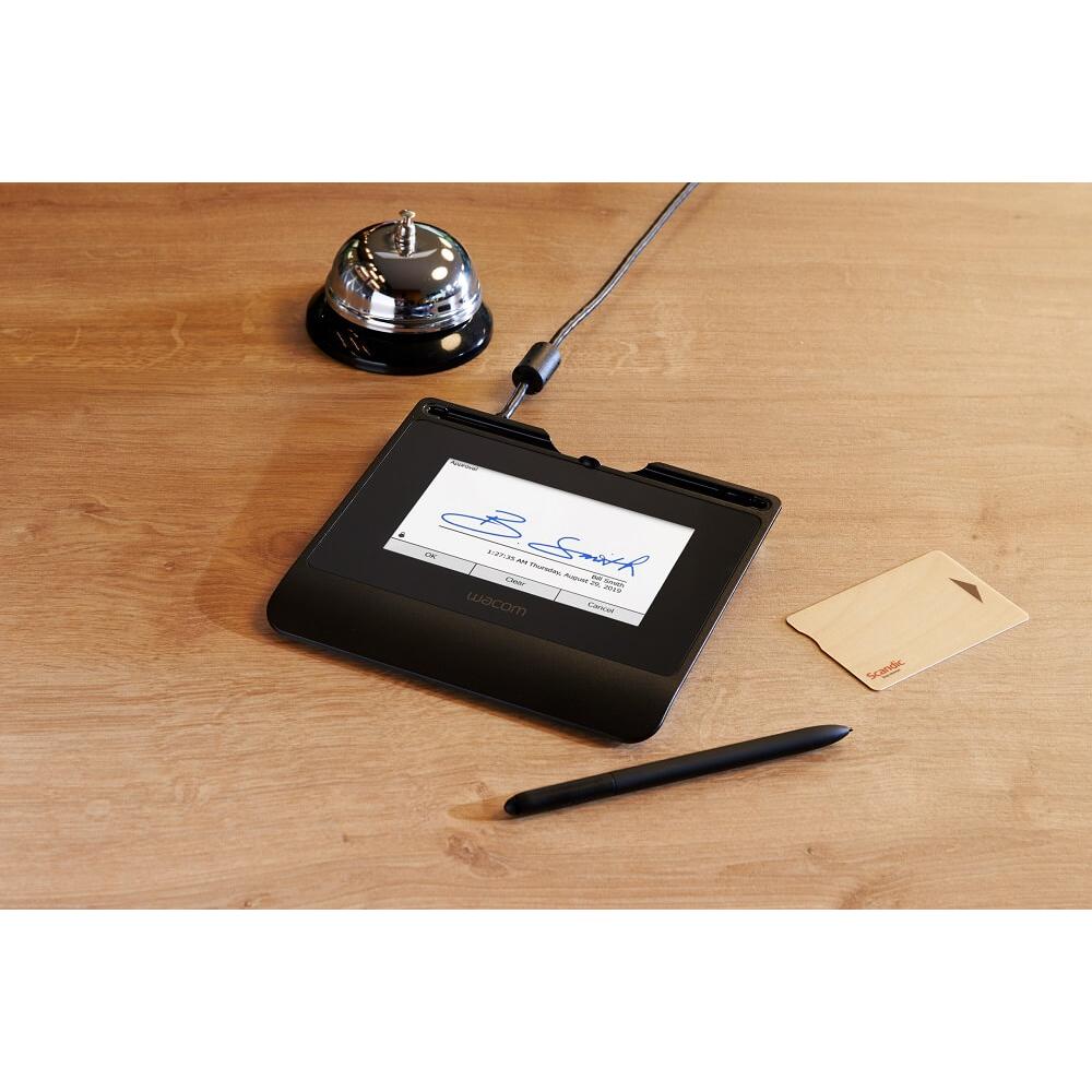 The Wacom STU-540 is a premium-grade electronic signature pad designed for high-traffic, business-critical environments such as banking, hospitality, clinics and retail points of sale. Its 5-inch colour TFT display delivers a crisp 800 × 480 resolution, combined with a hardened glass surface with anti-glare treatment for a natural pen-on-paper feel—even in brightly lit areas.